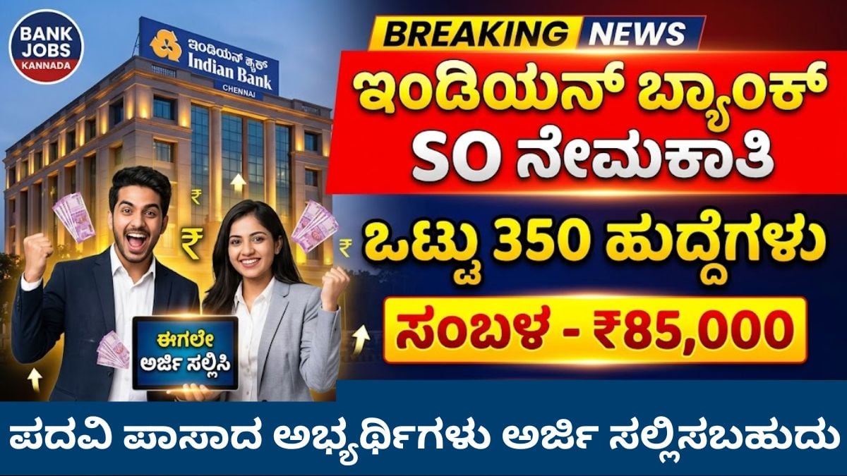 Indian Bank SO Recruitment 2026 : ಒಟ್ಟು 350 ಹುದ್ದೆಗಳು – ಪದವಿ ಪಾಸಾದ ಅಭ್ಯರ್ಥಿಗಳು ಅರ್ಜಿ ಸಲ್ಲಿಸಬಹುದು..!